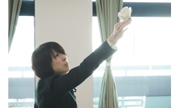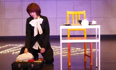 そもそも「ト書き」も「キャスト表」もないシナリオです。登場人物の人数も性別も名前も不明。6年間、演出し続けた結果「1人しか出ない戯曲」もあったのだと。もはや性別もタブーも無視して上演します。冒頭のシーンは死んだ劇作家の追悼に捧げられたバラに、恐る恐る近づく主人公。原作のト書きにはそんな事書いていないのですが、ここから始まっているのです。319日目