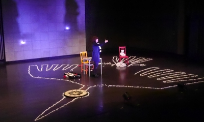 北九州芸術劇場は素晴らしい劇場でした。俳優としても楽屋の充実や床の弾力で、1人芝居の疲労が軽減されたのが体感できました。さすが一流の劇場は違うと。そして舞台美術も照明も音楽も演出効果は総て上手く言ったと自負出来ました。新しい概念で持ち込んだLED照明と芸術劇場のイエローのバランスは美しかった。生声も届きやすい設計で、俳優の等身大の姿が見える観客席はさすがの小劇場でした。